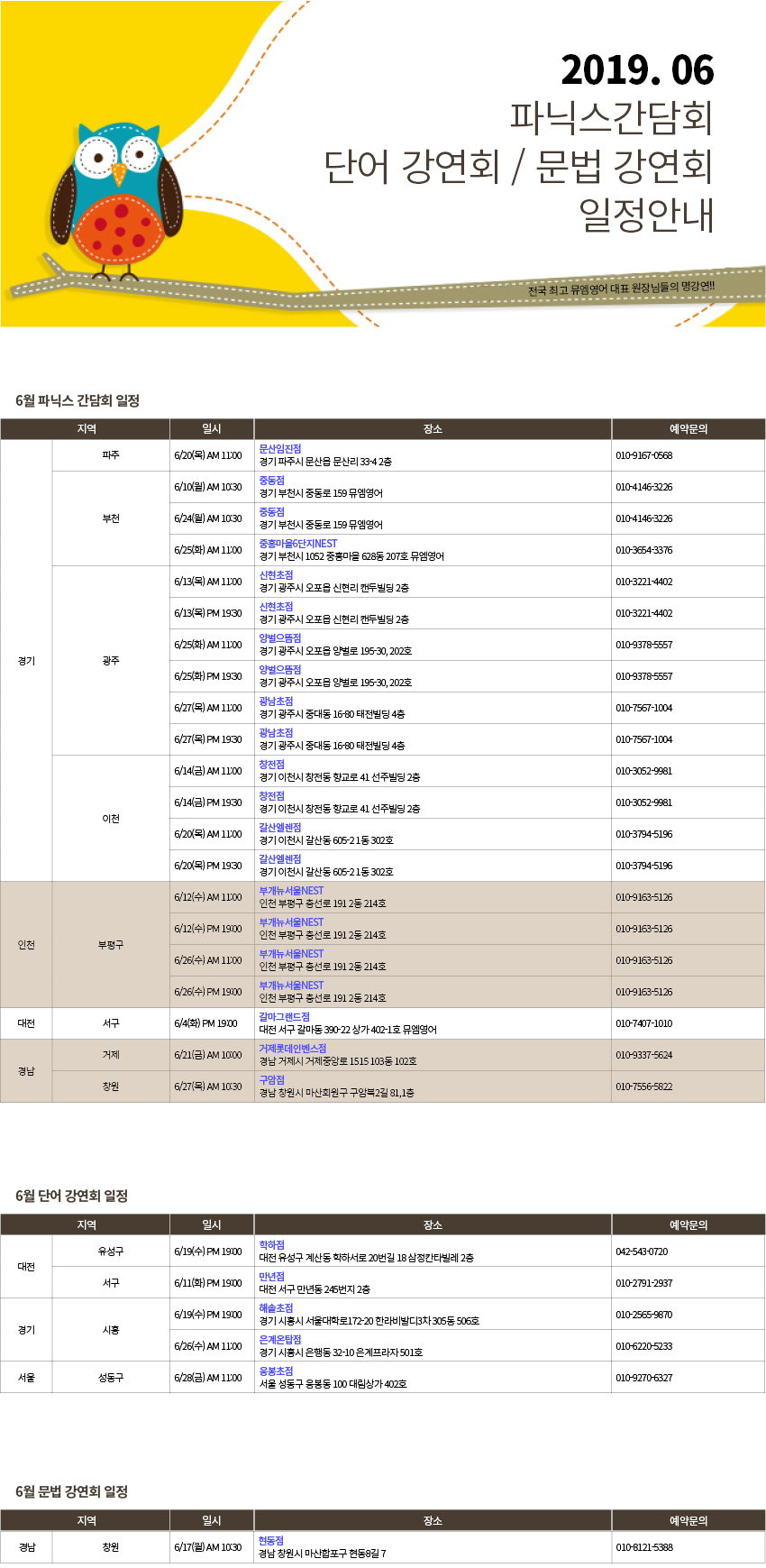 | 초등영어 대표 프랜차이즈 뮤엠영어의 19년 06월 사업설명회 일정표 (0) | 2019.05.24 |