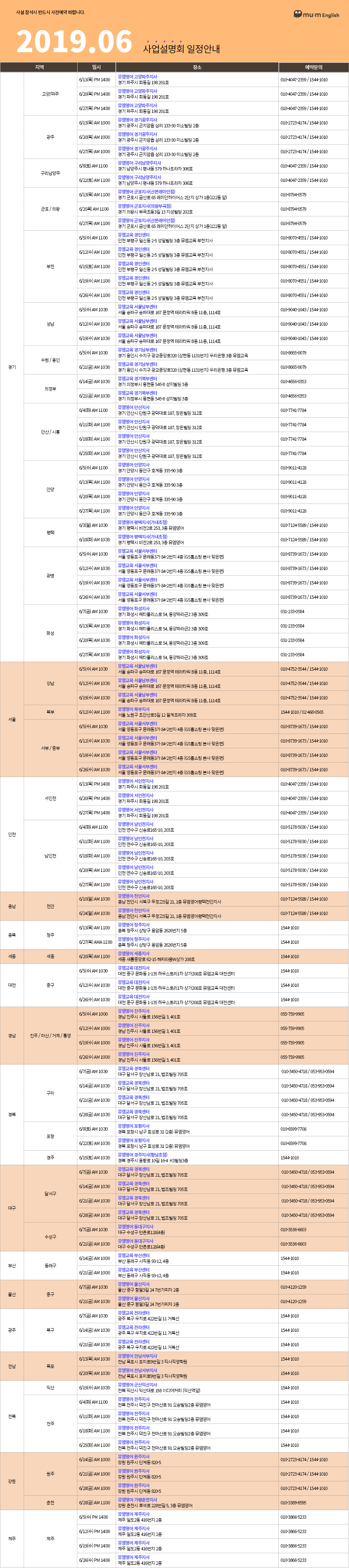 | 초등영어 대표 프랜차이즈 뮤엠영어의 19년 06월 학부모설명회 일정표 (0) | 2019.05.24 |