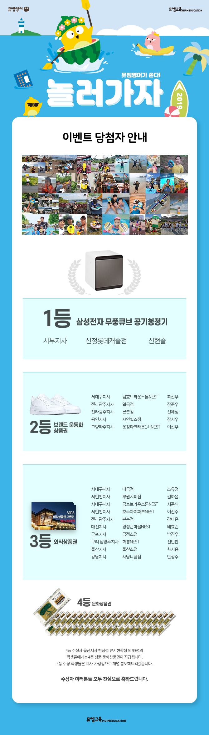 그 기운을 이어 뮤엠영어 대표 여름 이벤트 "놀러가자" 당첨자를 알려드릴게요!