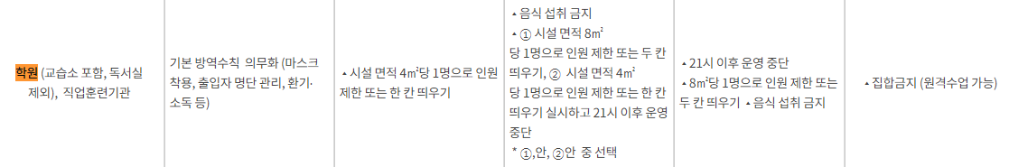 -> 10명 혹은 자리 한 칸 띄우기 실시하고 21시에 운영 중단