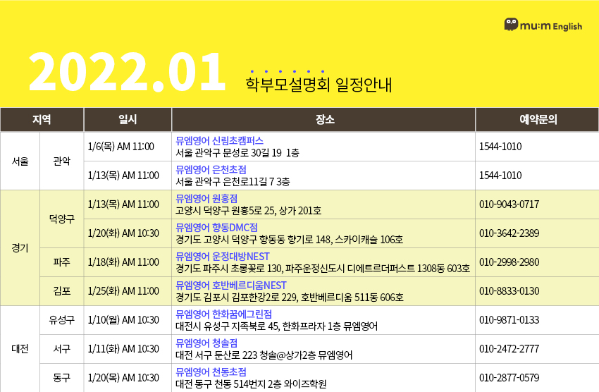 | 초등영어 대표 프랜 차이즈 뮤엠영어의 21년 12월 학부모설명회 일정 (0) | 2021.11.26 |
